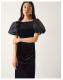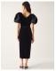 Make an entrance. Cloaked in velvet, this midi dress has been designed with puff sleeves and a back slit, for added drama. Flatteringly cinched at the waist, it's made to be shown off at black tie events. Voila! Black