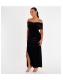 QUIZ Petite Black Velvet Bardot Wrap Dress