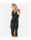 Yumi Black Sequin Wrap Fitted Dress