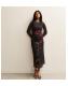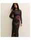 Petite Black Flower Ruched Mesh Midi Dress