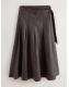 Nothing Ordinary Chocolate Brown Faux Leather Wrap Midi Kilt Skirt