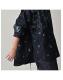 インディゴ抜染ローズプリントのボーイフレンドシャツ