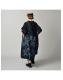 インディゴ抜染ローズプリントのスモックドレス