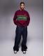 Prohibited knitted logo jumper in red