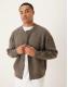 ASOS DESIGN oversized knitted fisherman rib crew neck cardigan in brown marl
