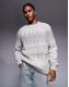Boss Orange karombo relaxed fit textured fairisle knitted jumper in light beige