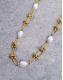 This necklace is crafted from stainless steel in a gold-tone finish. Featuring a unique knot chain, this style is adorned with faux-pearl embellishments and fastens via a lobster clasp and extender chain.