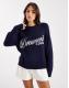 "Dreamers club" text knit pattern on front and "97" text on sleeve