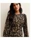 Black Floral Print Three Quarter Sleeve Midi Dress