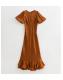 Maternity Orange Feather Jacquard Satin Midi Dress