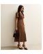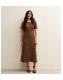Brown Crinkle Texture Spot Print Midi Dress