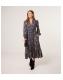 Blue Vanilla Black Floral Gathered Midi Dress