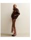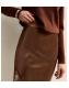 Brown Satin Lace Trim Asymmetric Bias Cut Maxi Skirt