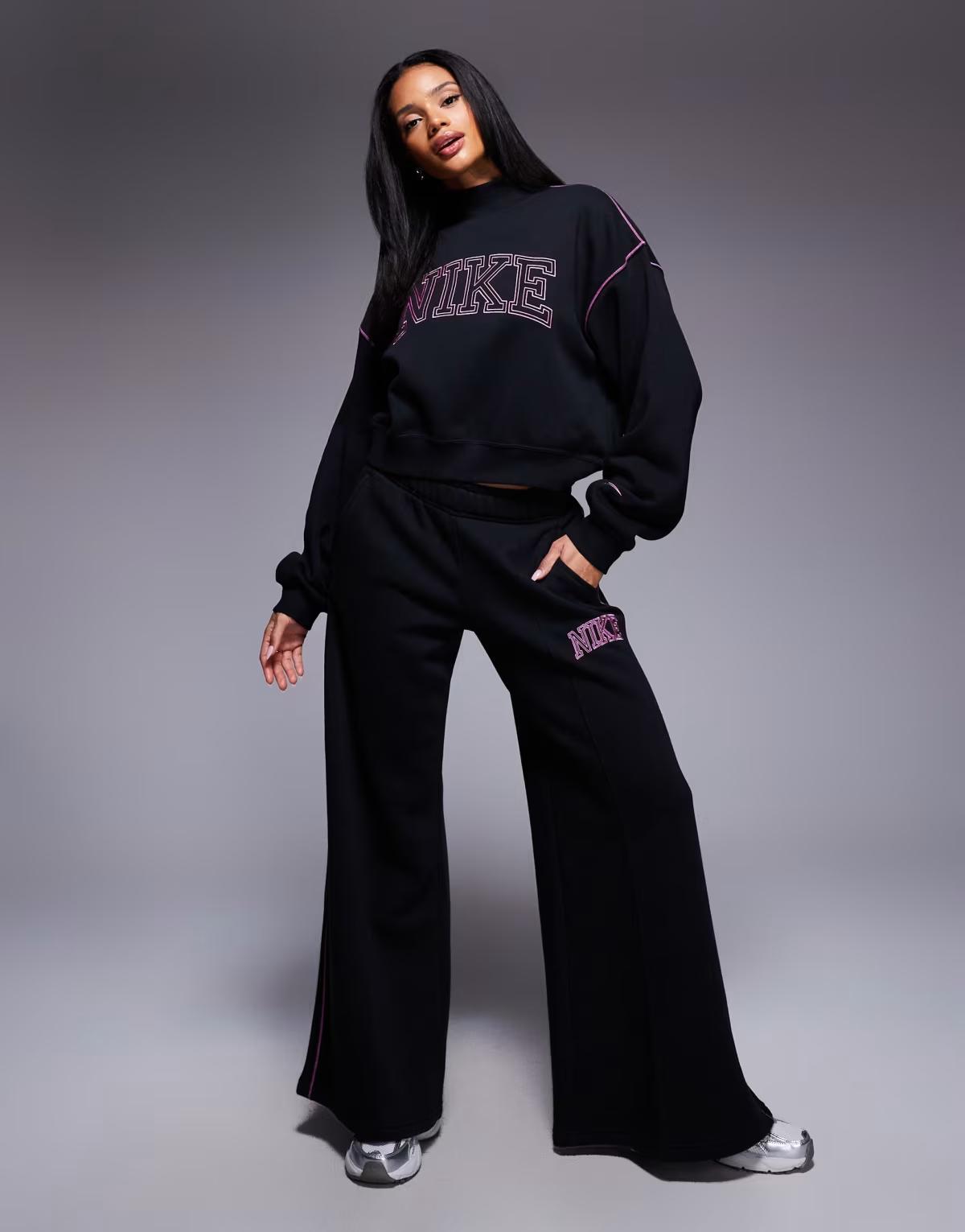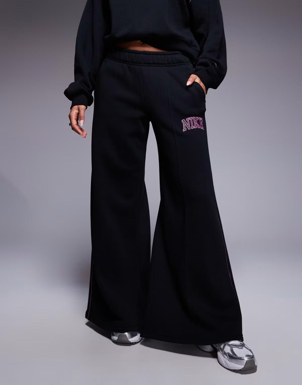 Nike retro logo wide leg joggers in black
