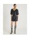Black Faux Leather Puff Sleeve Mini Dress
