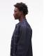 CAT WWR button through regular fit denim overshirt with contrast stitching in dark wash blue