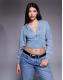 Good American cotton cropped hoodie and jeans co-ord in light blue wash