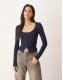 ASOS DESIGN rib long sleeve with lace & button detail in navy