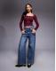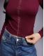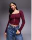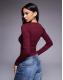 ASOS DESIGN cotton rib square neck long sleeve top with hook and eye in burgundy