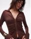 ASOS DESIGN slinky ruched hook and eye longline top in chocolate