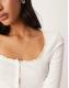 ASOS DESIGN rib long sleeve with lace & button detail in cream
