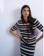 This polo shirt is crafted from a ribbed knit and features a stripe design. It has a polo collar, zip fastening and short sleeves.