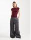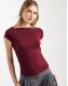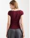 ASOS DESIGN rib boat neck t-shirt with ruched waist in burgundy