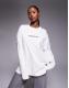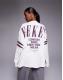 Weekend Collective Icon long sleeve t-shirt with stacked back logo in cream and plum