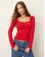 Gina Tricot bow tight rib long sleeve top in red