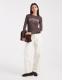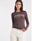 ASOS DESIGN semi sheer long sleeve top with Copenhagen graphic in chocolate and ecru