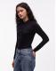 ASOS DESIGN soft semi sheer long sleeve polo shirt in black