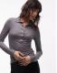 ASOS DESIGN soft semi sheer long sleeve polo shirt in charcoal