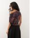 Reclaimed Vintage x Stranger Things slinky top with cowl neck in red and black Eleven print