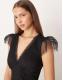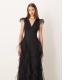 Lace & Beads Bridesmaid sheer cap sleeve ruffle maxi dress in black