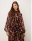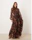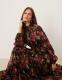 Lace & Beads Bridesmaid Violetta long sleeve maxi dress in black floral print