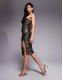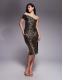 Vesper Bardot sequin midaxi dress with thigh split in gold