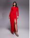 Vesper High neck low back maxi dress with long sleeves in red