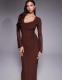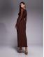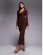 ASOS DESIGN mesh angel sleeve lace up back long sleeve maxi dress in chocolate