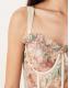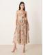 Lace & Beads Bridesmaid tulle corset midi dress in soft brown floral