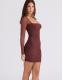 House of CB Anouk mocha mesh long sleeve mini dress in mocha