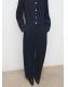 Tejido de algodón estilo tejano vaquero. Diseño largo. Diseño recto. Cuello redondo. Manga larga con puños abotonados. Dos bolsillos laterales. Cierre delantero con botones