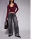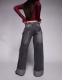 Liquor N Poker cinch midrise turn up baggy denim jeans with contrast stiching in darkwash grey