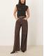 Mango Libra 100% cotton wide leg jean with embellishment in brown