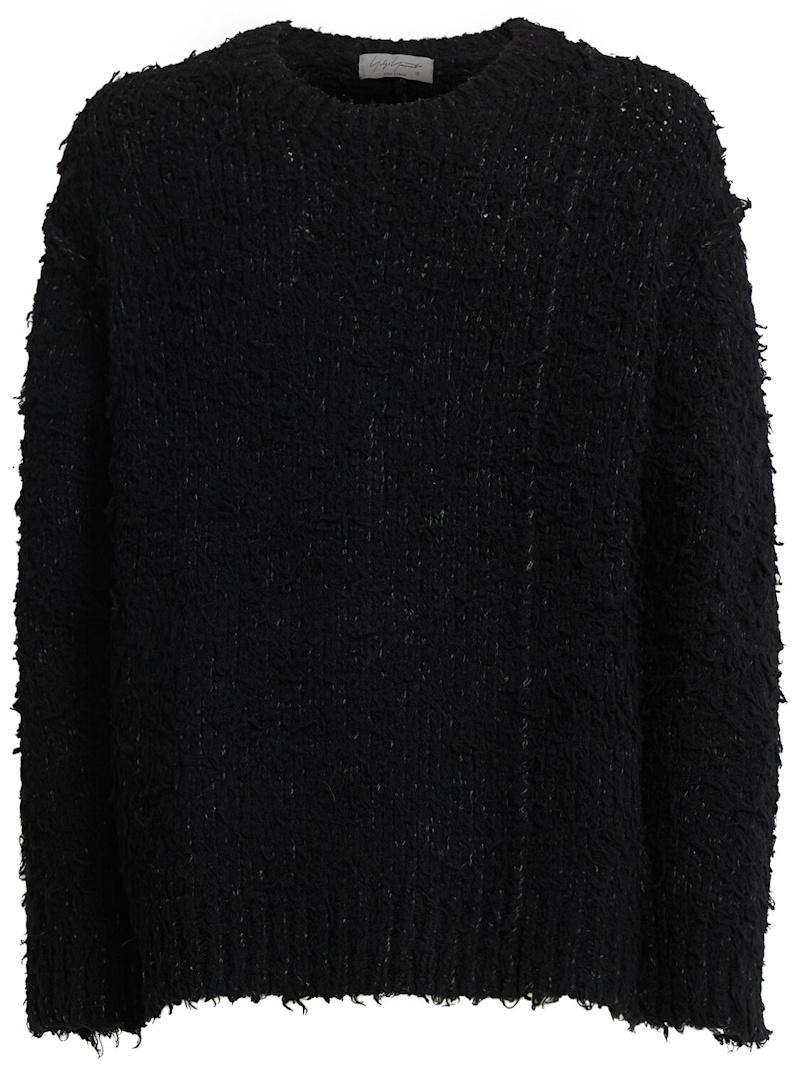 起绒羊毛圆领毛衣 - 黑色 - 男士 - Yohji Yamamoto - 罗纹边缘.