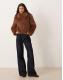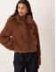 JJXX faux fur zip coat in brown
