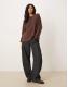ASOS DESIGN long sleeve oversized top with lace trim detail in chocolate
