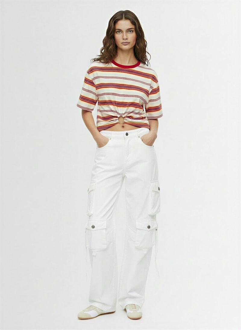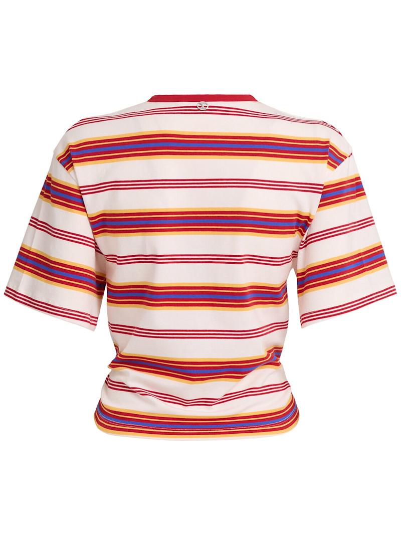 条纹平纹针织T恤 - 白色/多色 - 女士 - Rabanne - 圆领设计.