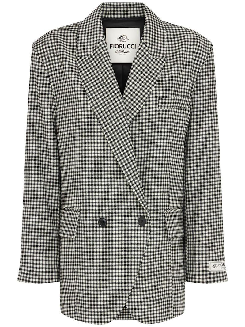 羊毛混纺单排扣西服夹克 - 黑色/白色 - 女士 - Fiorucci - 正面纽扣开合.