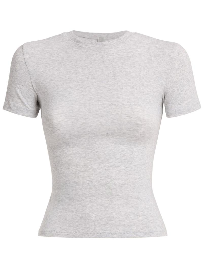 混棉平纹针织T恤 - 浅灰色 - 女士 - Skims - 圆领设计.