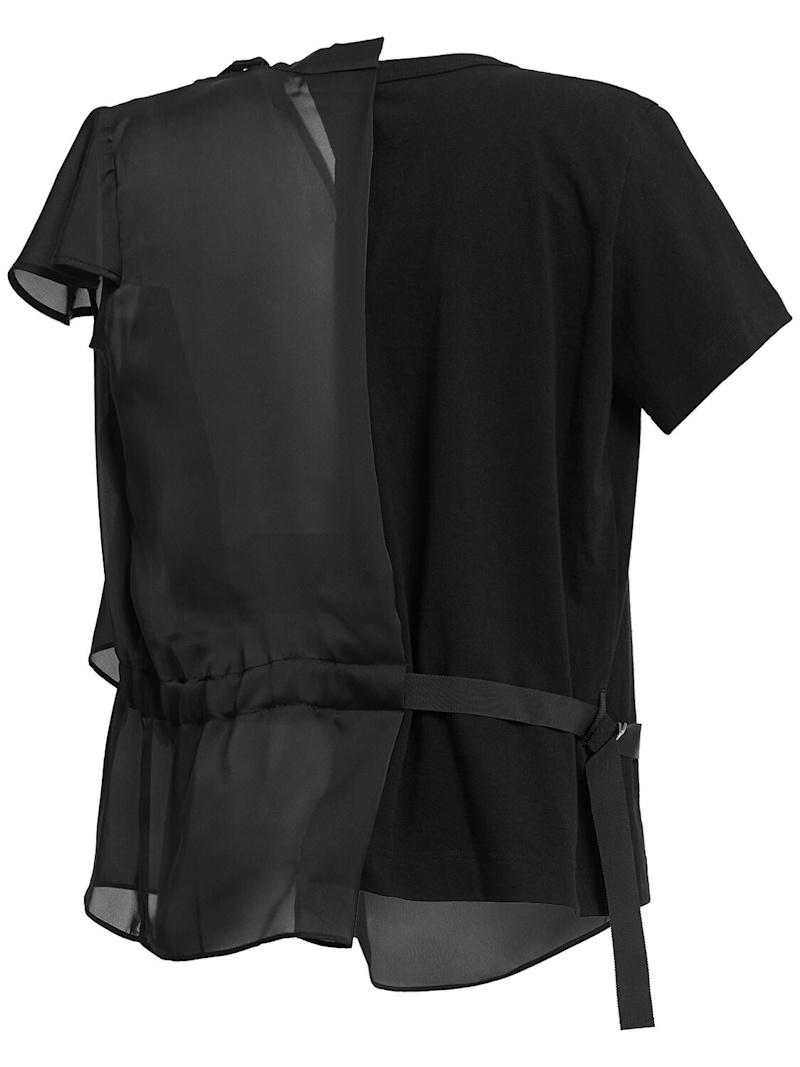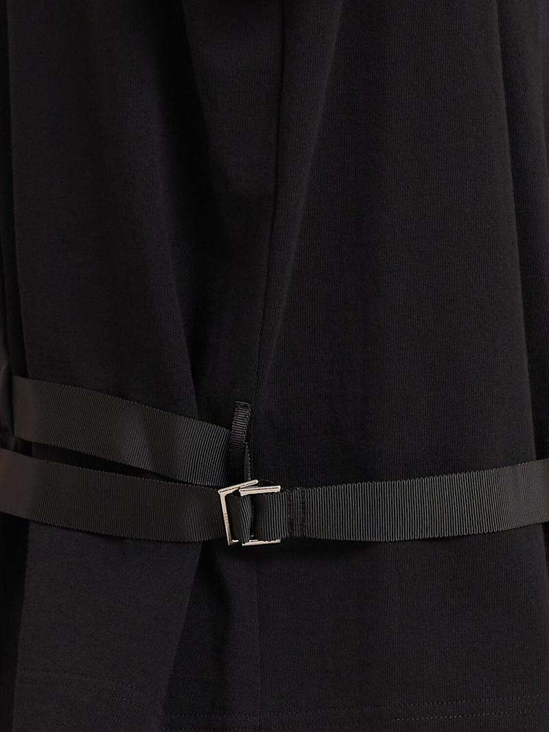 绸缎&棉质针织T恤 - 黑色 - 女士 - Sacai - 可调节腰带配有腰头搭扣开合